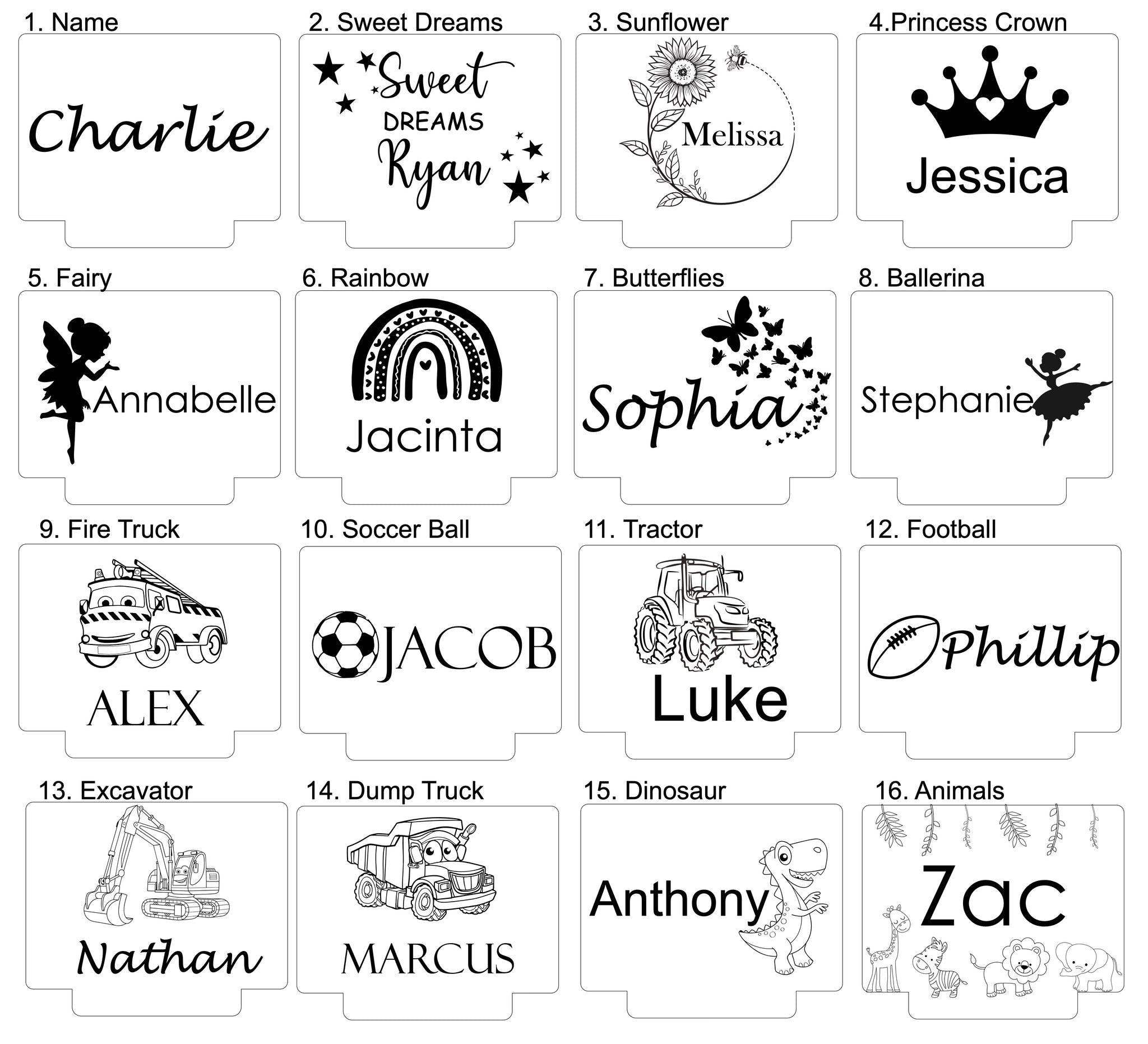 - Laser engraved and cut. Name and design will NOT peel off overtime!!!